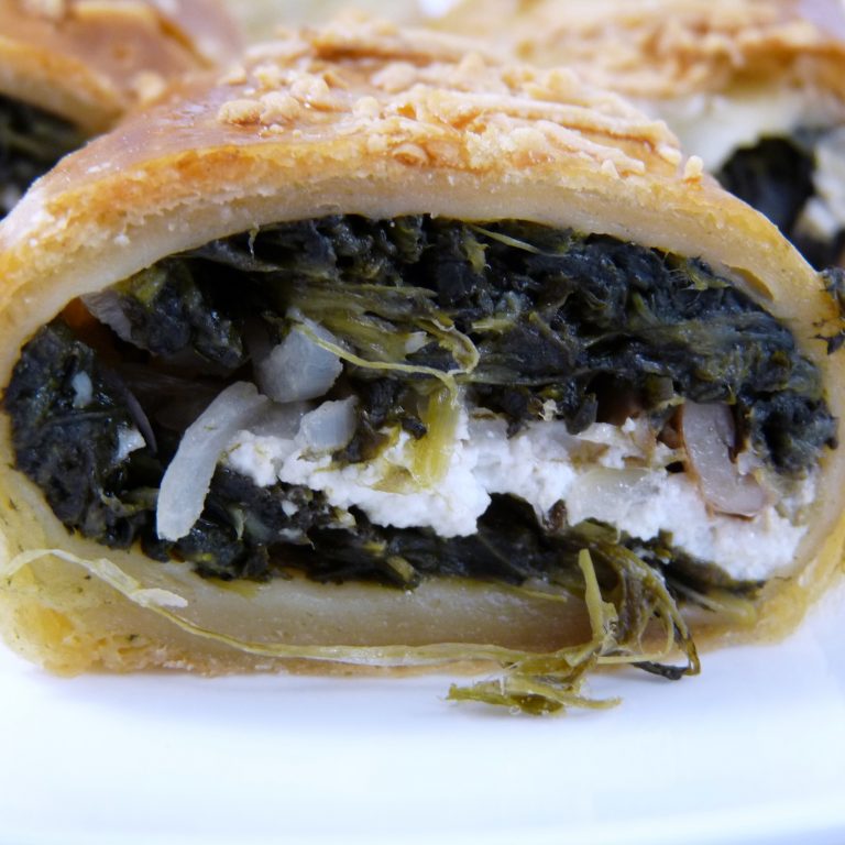 Vegetarisch en een lekkere combinatie. Spinazie en geitenkaas omringt door een strudeldeeg.