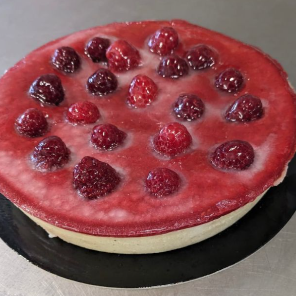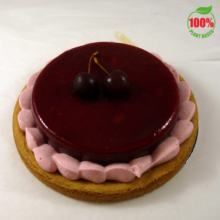 De vernieuwde cheesecake. Voorzien van een heerlijke frambozen gelei. Volledig plantaardig!