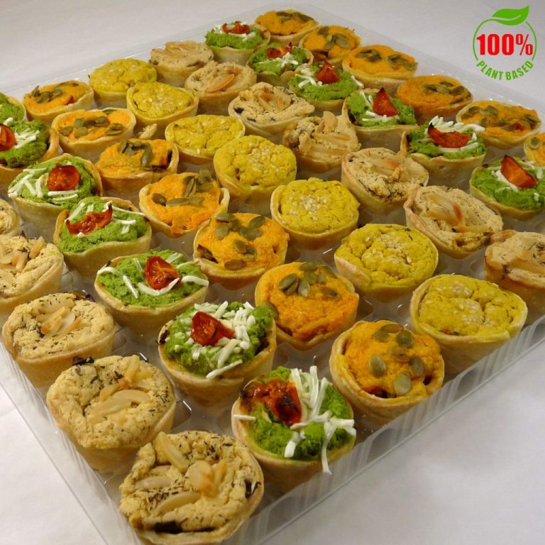 Een heerlijke hartige mini quiche. gemaakt met 100% plantaardige grondstoffen. Doos is voorzien van 49 stuks.