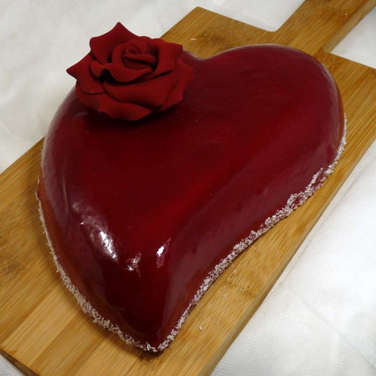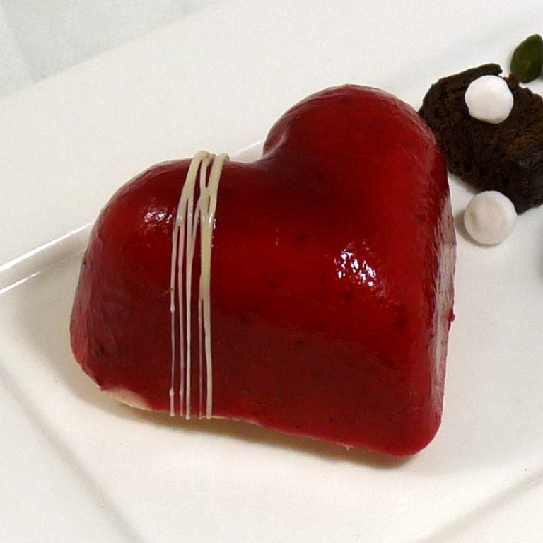 Een luchtige aardbeienbavaroistaart in een sierlijke hartvorm. Gemaakt van verse aardbeienpuree en dat proef je!