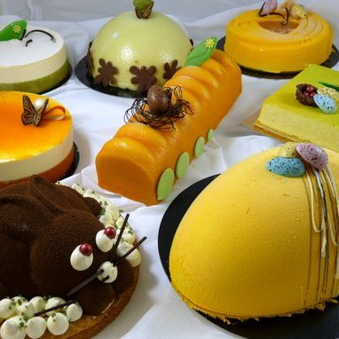 Prachtig mooi paas dessert buffet (bavarois) voor ongeveer 65 personen. Inhoud buffet kan afwijken van de foto