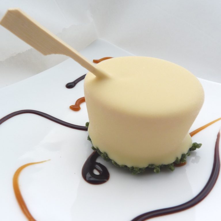Leuke vorm 1-persoons advocaat bavarois mono. Een eyecatcher op het bord!